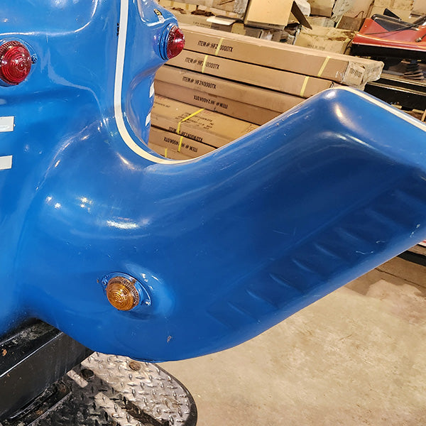 The body of the ride is fiberglass and can be repaired with fiberglass, sanded and repainted. Vinyl, now commonly used to decorate service vehicles, might also be a good option for an updated version of a ride with a good smooth base coat.