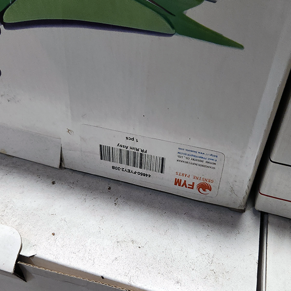 FYM was a popular Chinese brand of motorcycles that went out of business. This is a pallet of new FYM wheels and tires. Additional tire types and parts are also included on top of the pallet load. These items include new and used parts.
