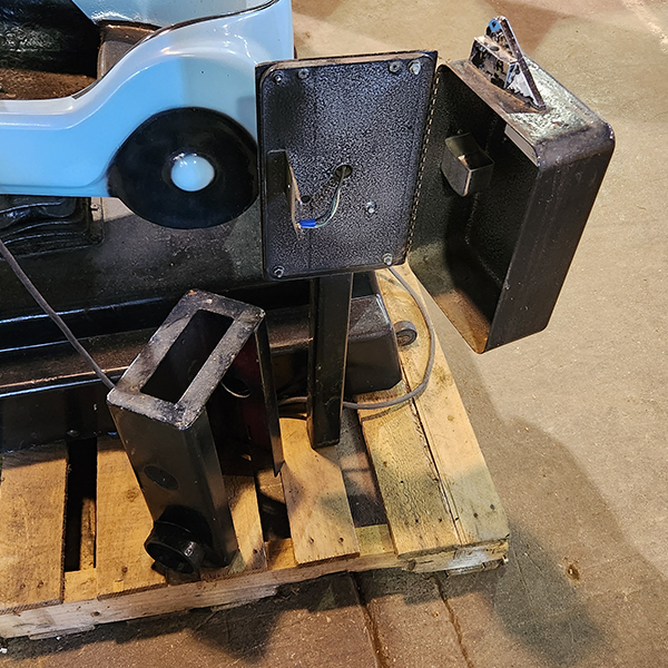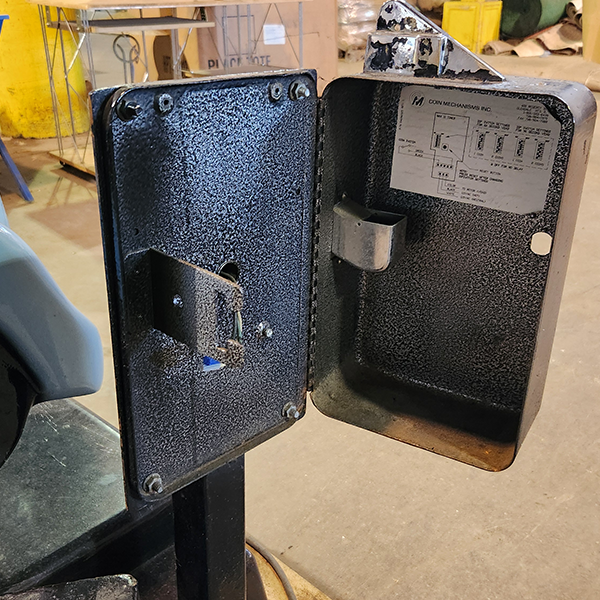 The coin collector and control board are removed and not available. It is assumed the motor is working.