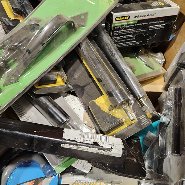The hardware pallet consists of shelf-pulled, retail packed hardware or overstock products. The hardware items are brand new, but may have shelfware. The products on this pallet contain random hardware which may be used to restock shelves, and provide for in-person or online sales. Please look at the images closely.