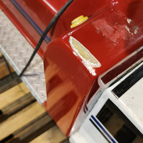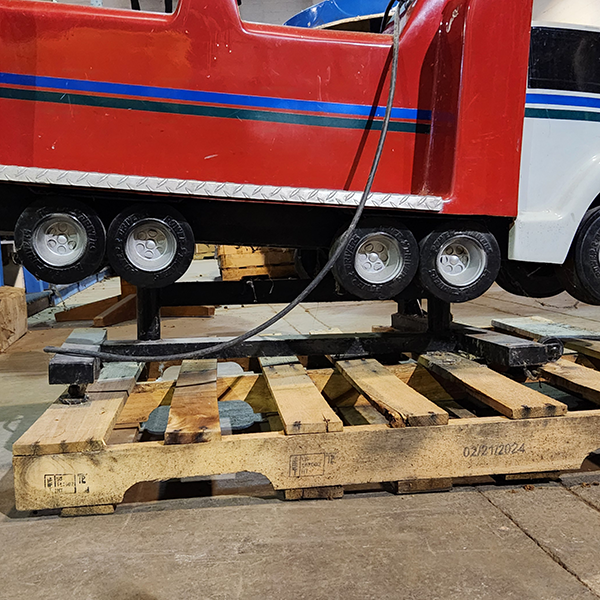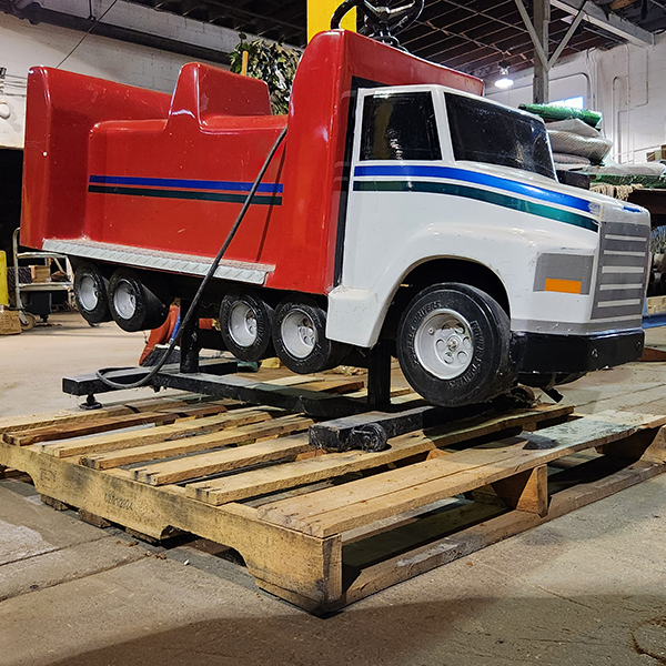 The body of the ride is fiberglass and can be repaired with fiberglass, sanded and repainted. Vinyl, now commonly used to decorate service vehicles, might also be a good option for an updated version of a ride with a good base coat.