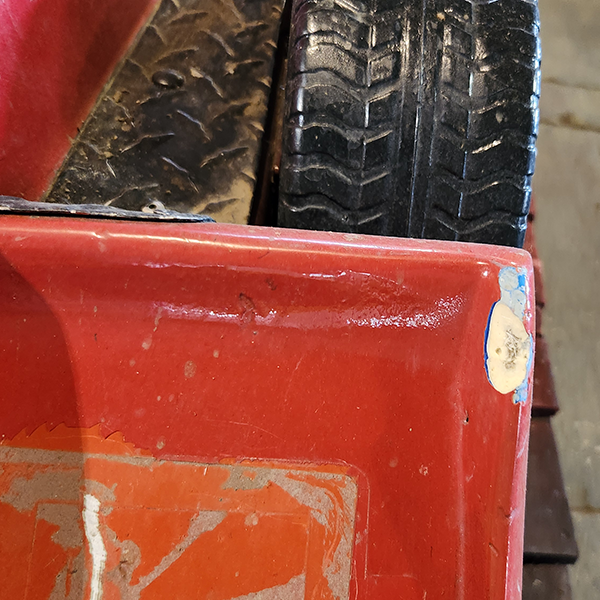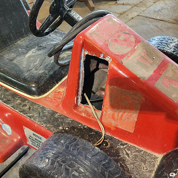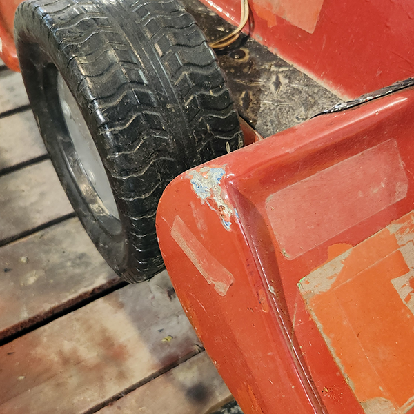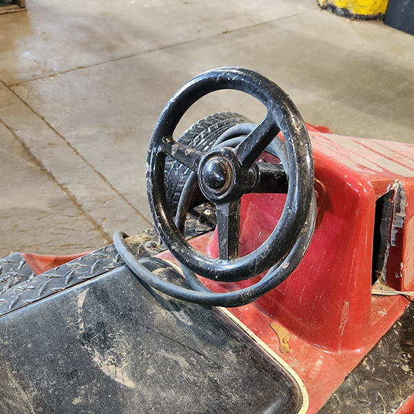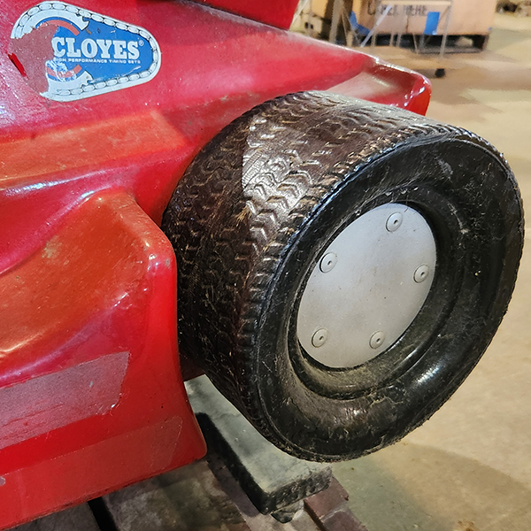 This red F1 Kiddie ride is a great looking piece and would make excellent restoration project for a talented individual. This unit has decorated stickers that have faded or delaminated. It also has some minor scraps and dings.