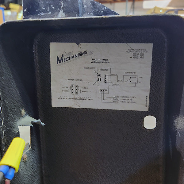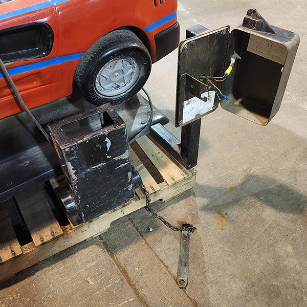 The coin box, control board, and coin hopper are missing from this unit. The coin box cover and locking pin are available. The unit itself is in very nice shape and could be operational again with a good cleaning. It is assumed the motor is working. The kiddie ride is available as is.